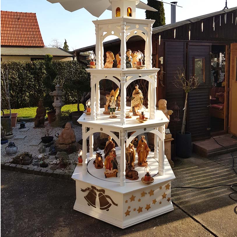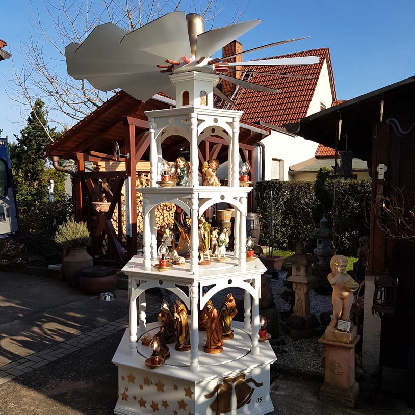 Zur Weihnachtszeit fertigt unsere Werkstatt auch klassische hölzerne Weihnachtspyramiden und Adventskalender speziell nach Ihren Wünschen.